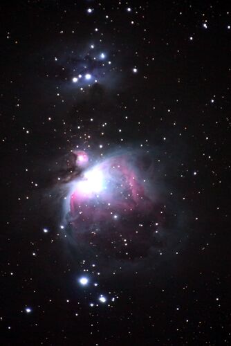 真冬の快晴の夜、オリオン大星雲を撮影した写真です。この星雲は肉眼でもうっすらと見えるので、素人でも写しやすい星雲です。